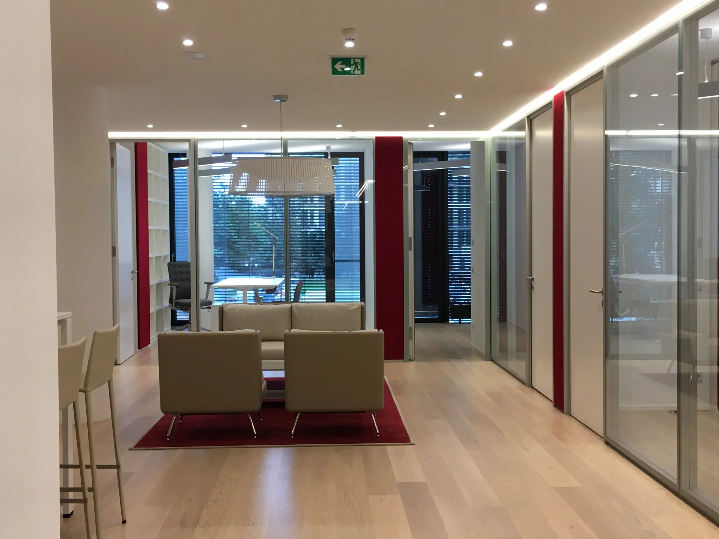 • linear LED bands running the full length of the hallway