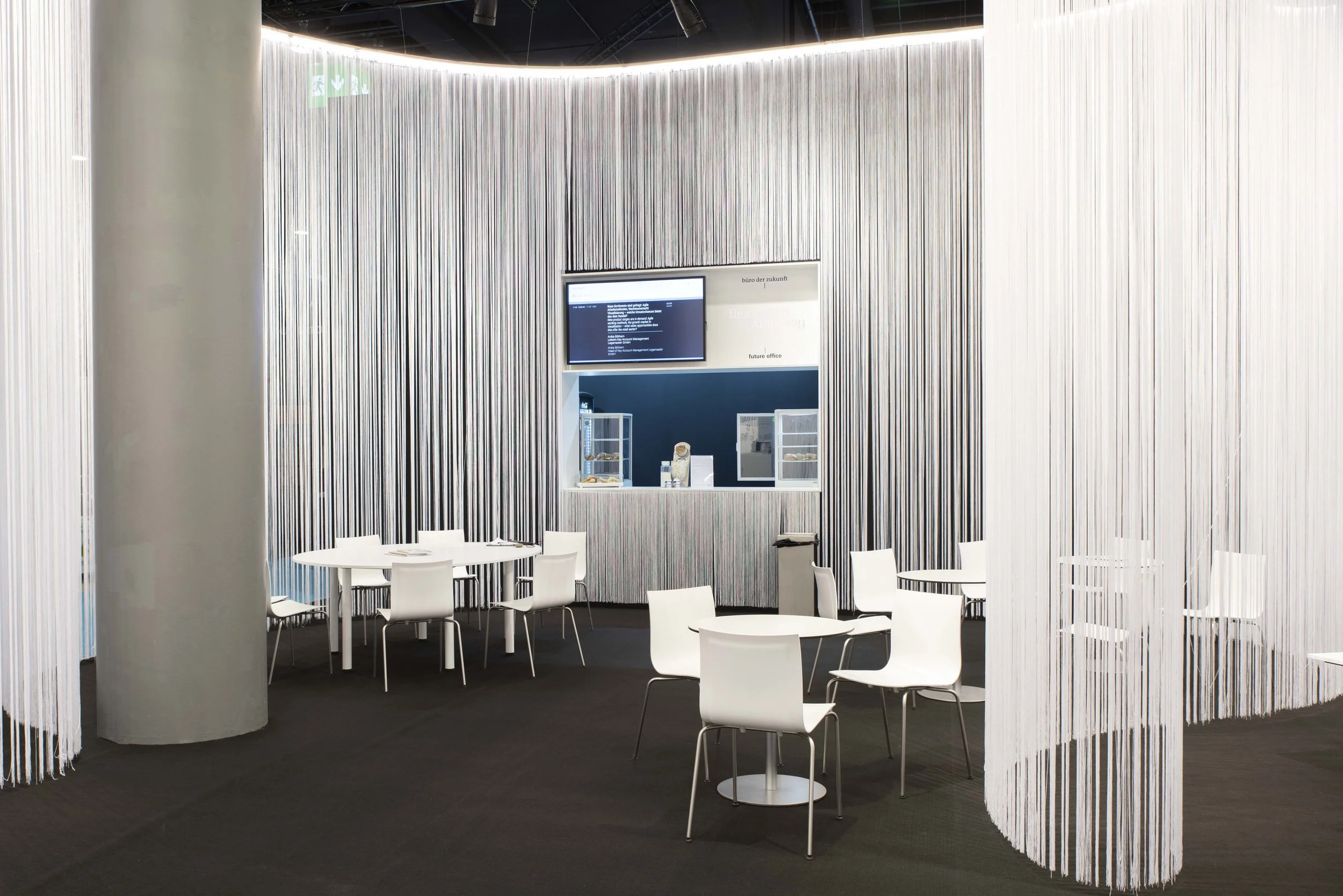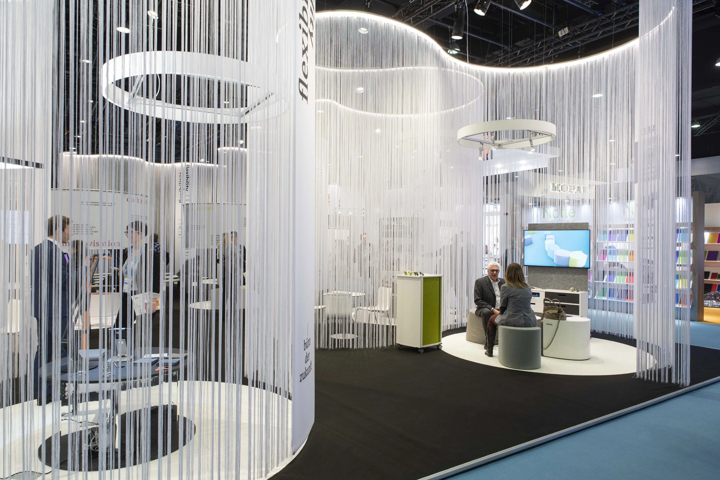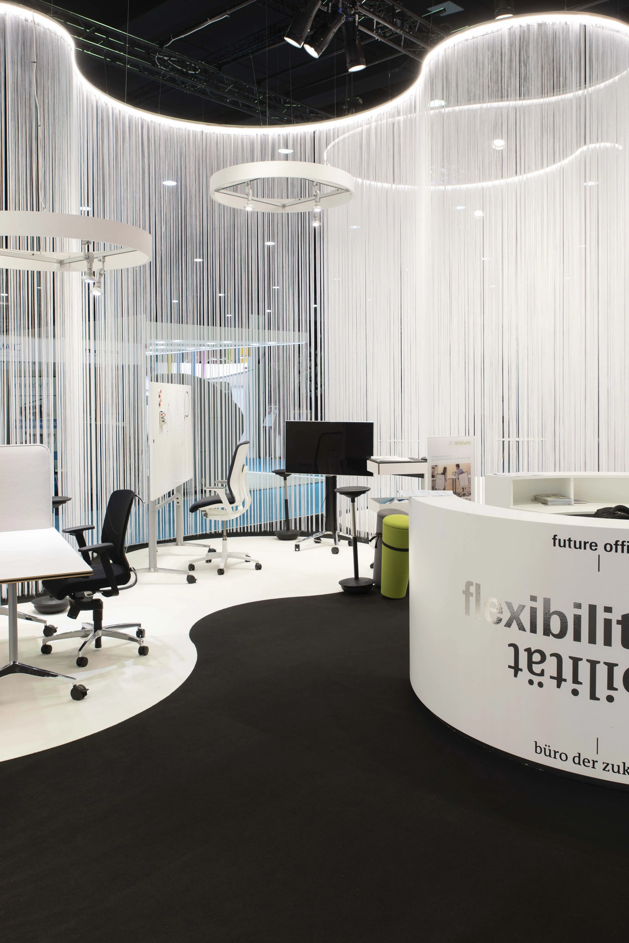 The showroom responds flexibly to different uses: consulting, events, content production, daylight changes.