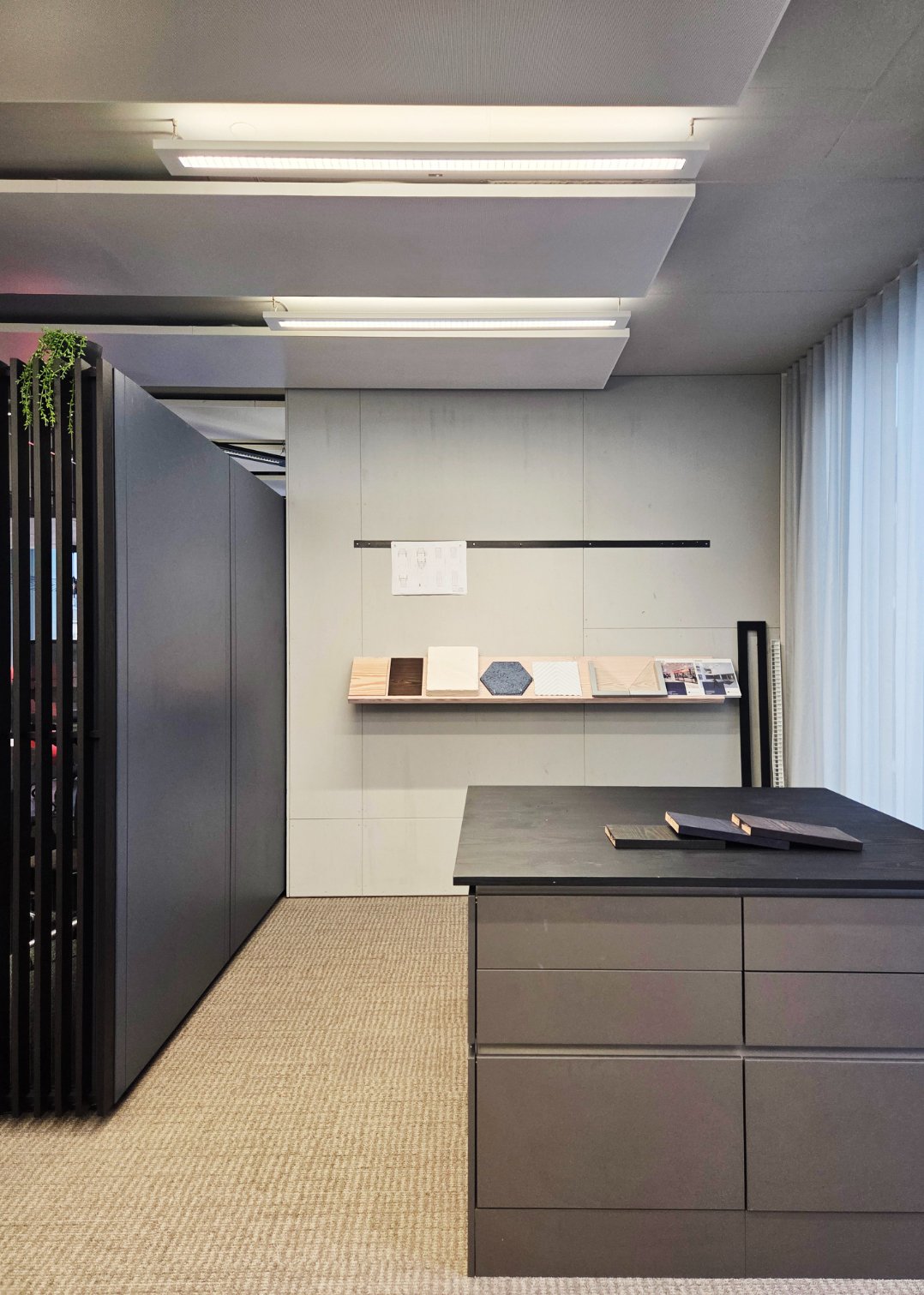 From the very beginning, the new shared location of Office Group and Ahrend was intended to be more than just an office. It was to function simultaneously as a showroom, a working environment, and an event space—a place that reflects the identity of both companies while also creating a welcoming atmosphere for consultations, client receptions, and events. Studio De Schutter refers to this interplay of corporate identity and hospitality as “Corpitality.” Lighting plays a key role in this concept: it enables changes in mood at the push of a button and flexibly transforms the spaces from workplaces into event locations. At the same time, sustainability is a central concern for both companies—a value shared by Studio De Schutter and consistently translated into the lighting design.
